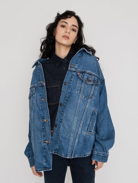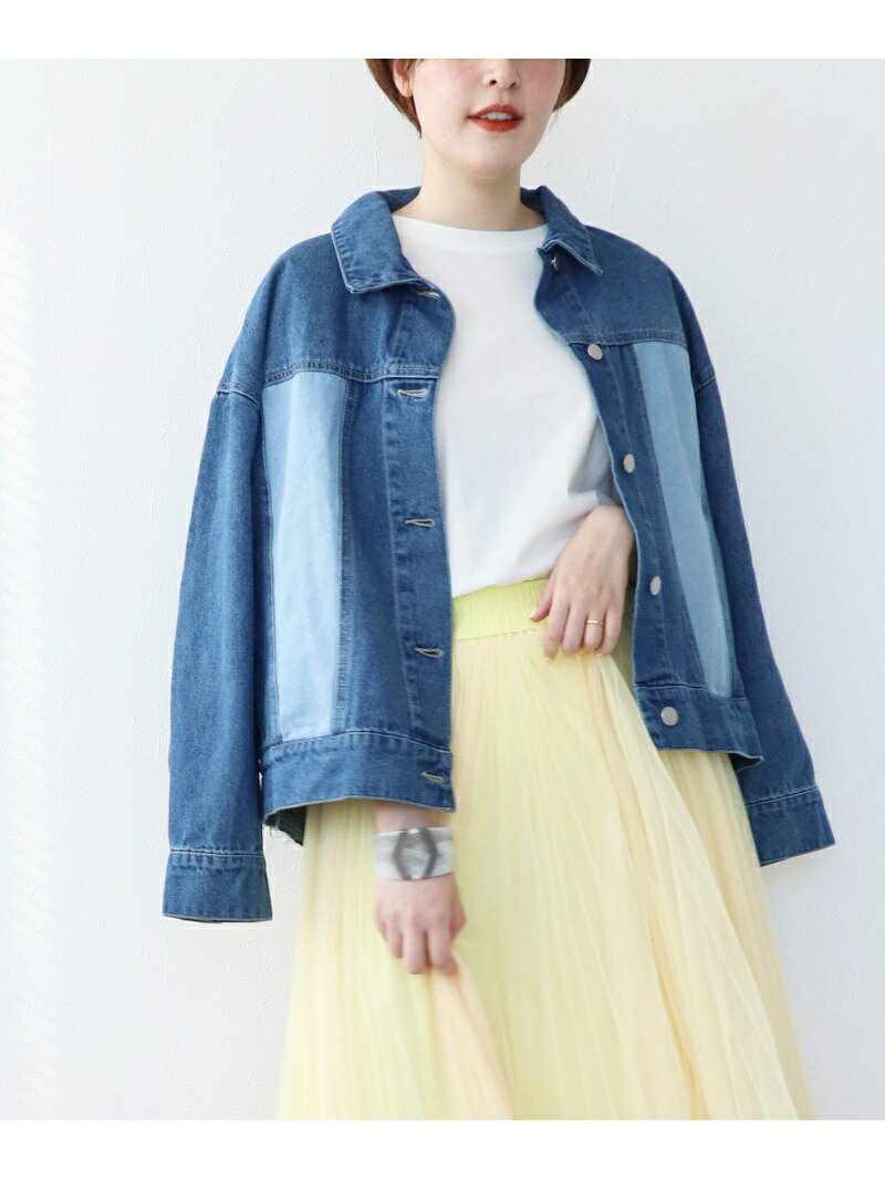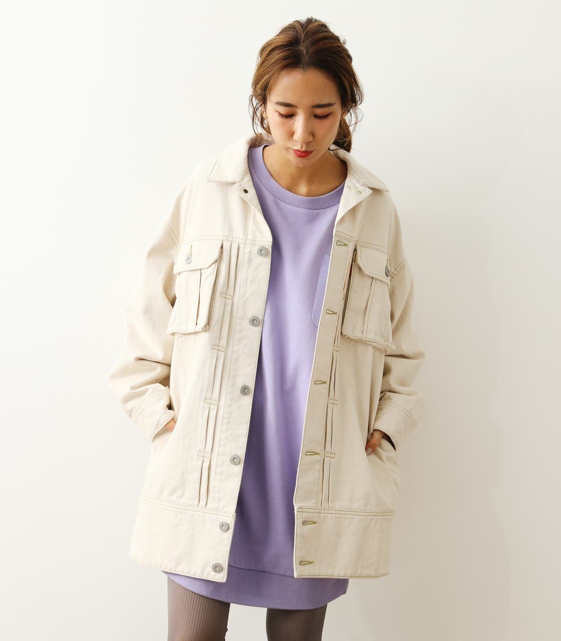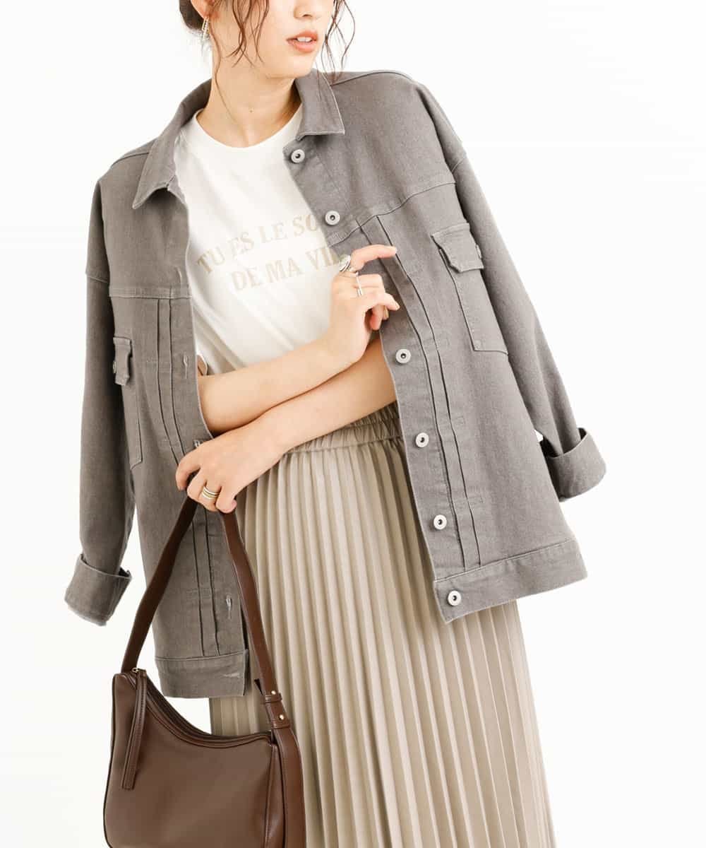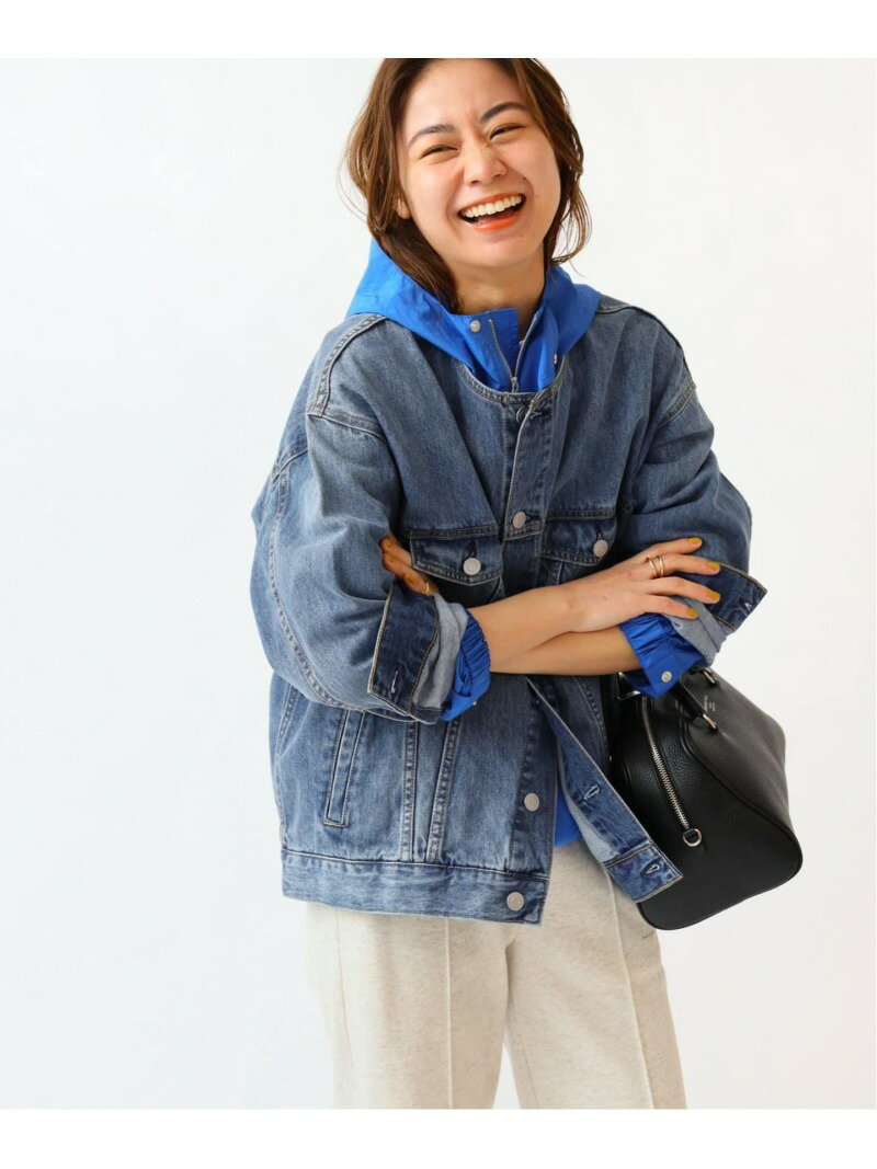 ヒップまでしっかり隠れるビッグサイズのデニムジャケットは春先に着るのにもぴったり。明るめのカラーを選べば、さわやかに着こなすことができますね。