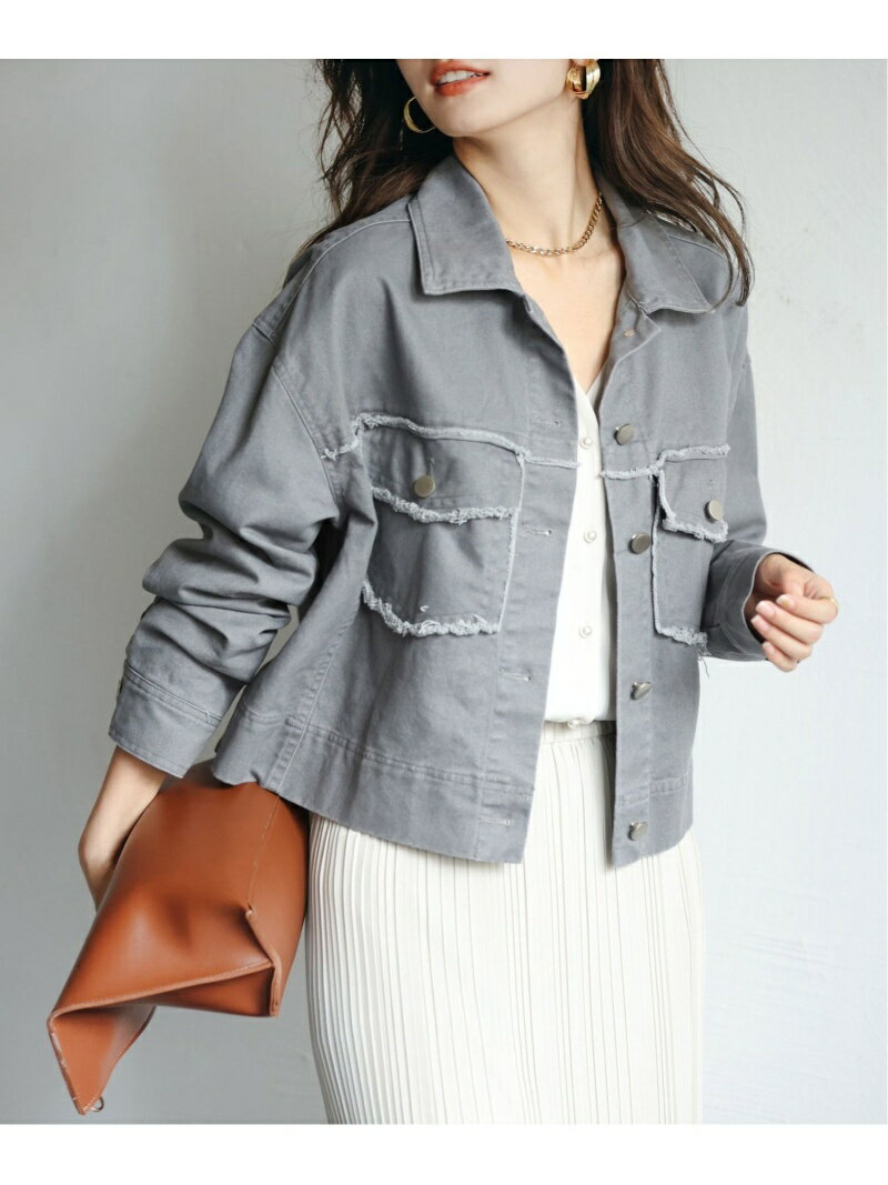 フリンジと定番カラーがこなれ感を出してくれます。デザイン性があるこちらのGジャンは、肩かけだけでも様になります。季節の変わり目にもってこいのアイテムです。