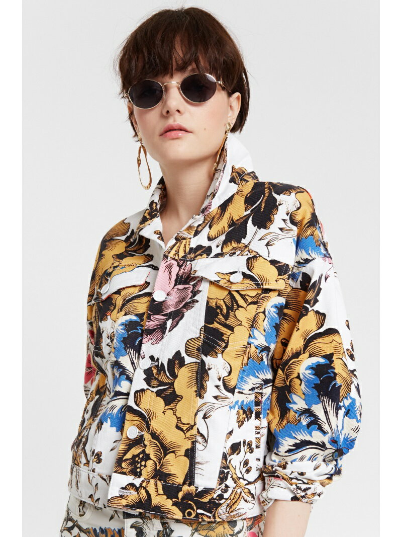 思いきってカラフルなデニムジャケットを選んでみるのもまわりと差をつけることができます。ハワイアンのフラワープリントは休日やバケーションで着たくなりますね!