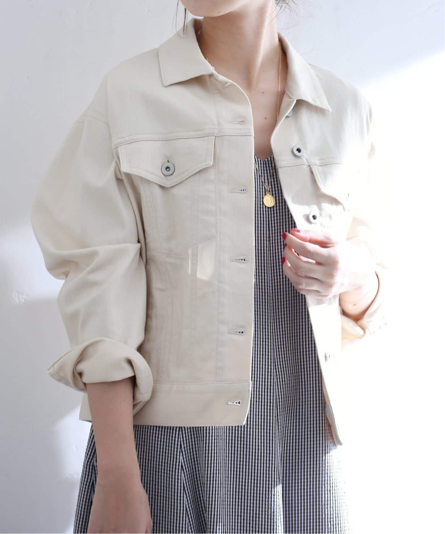 ブルー系が多いデニムジャケットですが、グリーンなどの少し変わったカラーを選ぶことで周りと差をつけることができます。ノーカラーのジャケットはスカートとも相性抜群!