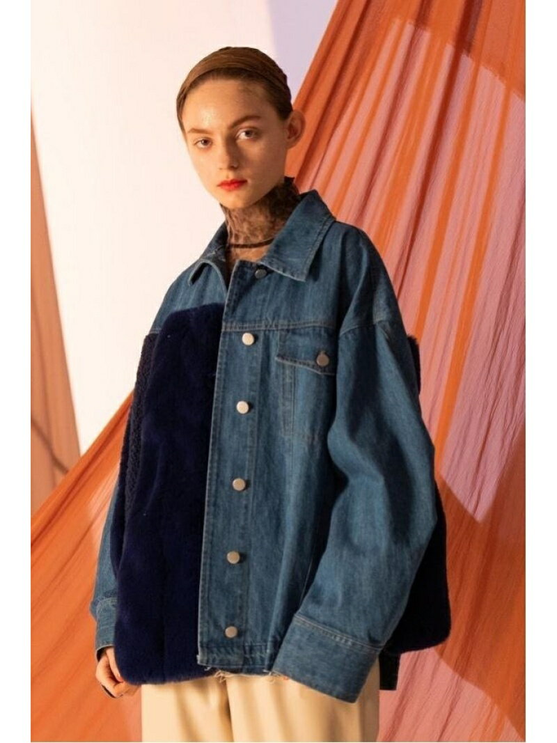 デニムとファーは実は相性ばつぐん!ブラックカラーのファーでデニムと馴染み、コーデにアクセントが加わります。