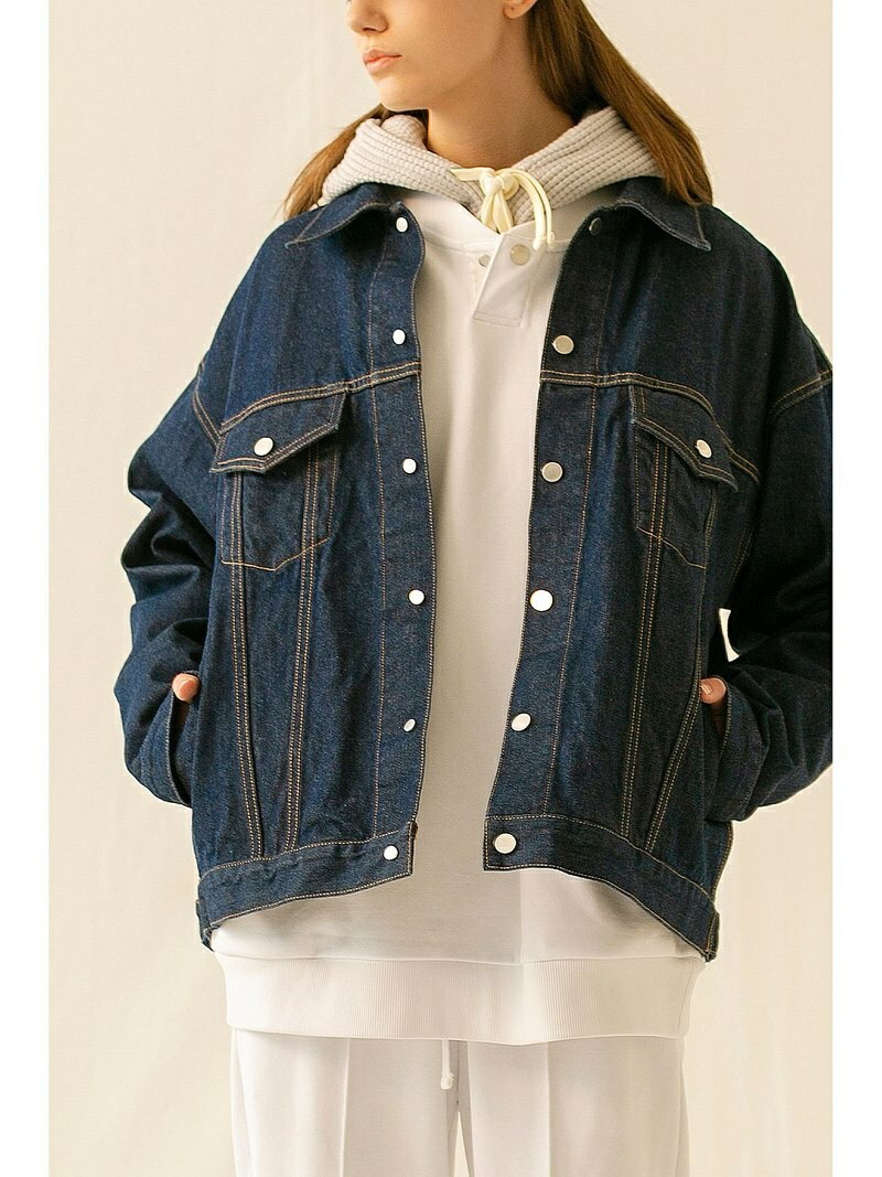 ゆるめの着こなしができるオーバーサイズのデニムジャケット。ラフさが出ますが、インナーをブラックなど濃い目の色にすることで全体的に引き締めることができます。
