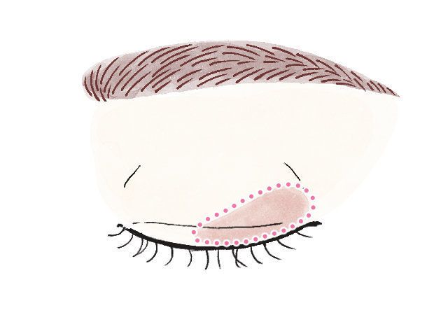 最後に目頭に、パールの入ったベージュなどで“くの字”にハイライトカラーを入れれば完成!