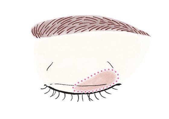 濃いめのグレー、ネイビー、ブラウンなどのアイシャドウを太めのライン風に入れましょう。塗るときのポイントは、チップを使ってワイパーのように塗ること!いったりきたりすることでグラデーションが生まれ、ベタ塗りを防げます。