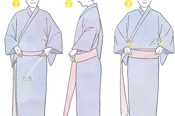 男性の浴衣の帯結びと代表的な「貝結び」の結び方