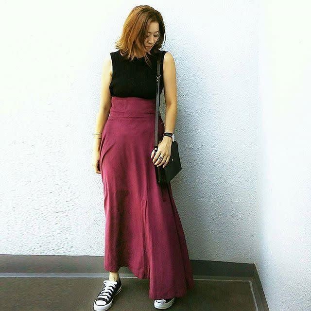 40代のヒップラインや気になる下半身のラインもカバーしてくれ、女性らしさも演出できるロングスカート。バランスともっさり感の出ないコツさえ注意すれば、普段はパンツ派でスカートを履かないという人も、チャレンジしやすいアイテム。ぜひトライしてくださいね。