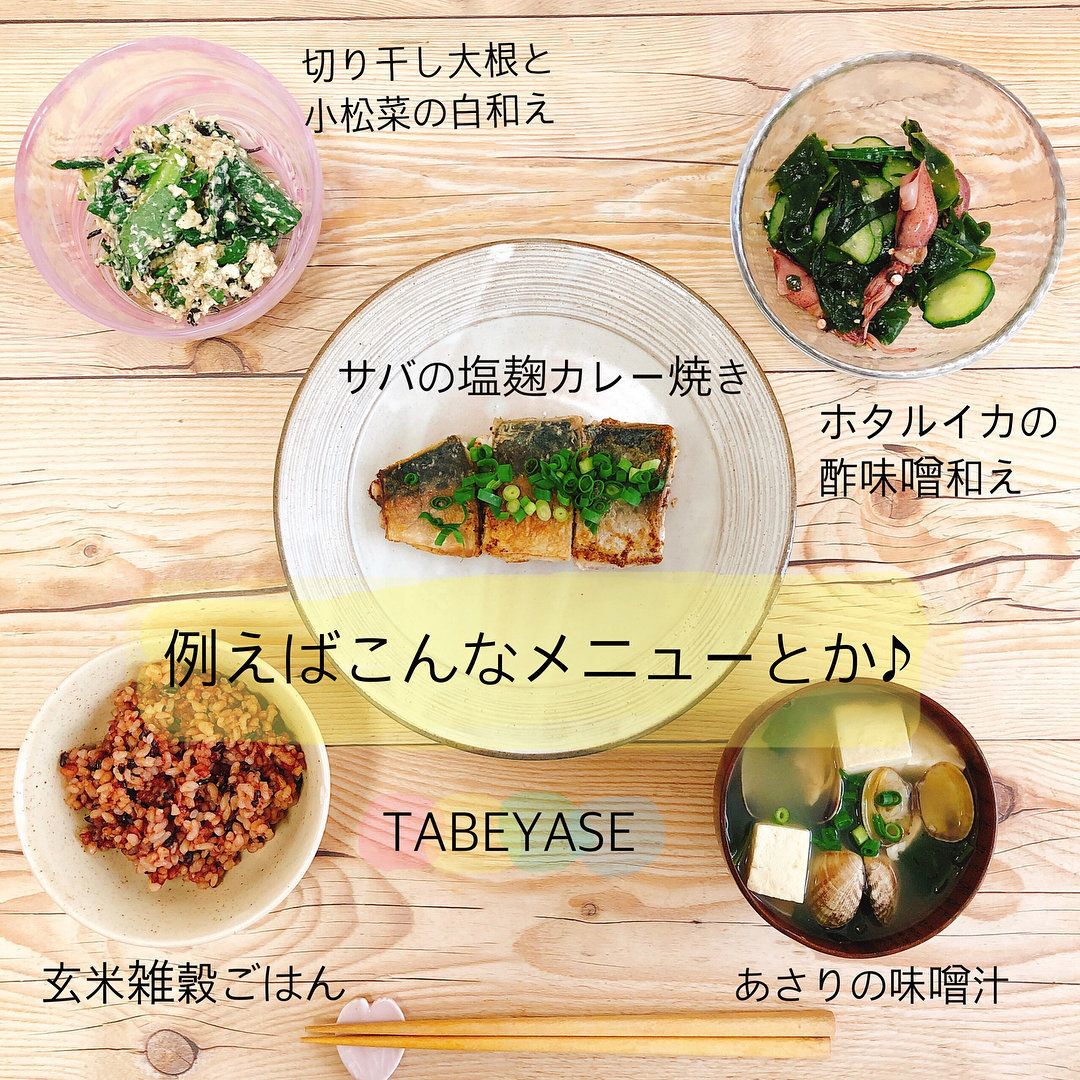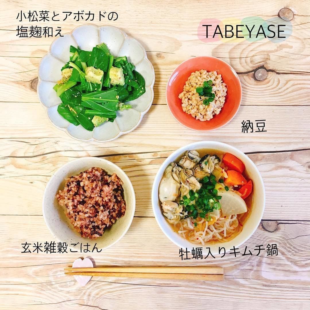 tabeyase_kitchenさんの食卓には、よく青菜が登場します。ほうれん草以外の青菜は生で食べられるため、サラダや和え物にすることが多いのだとか。塩麹、亜麻仁油+塩、練り梅+ナンプラー+醤油など、味付けのバリエーションも豊富!青菜はデトックス効果が高く、食べ過ぎたあとや肌荒れが気になるときにもおすすめだそうです。