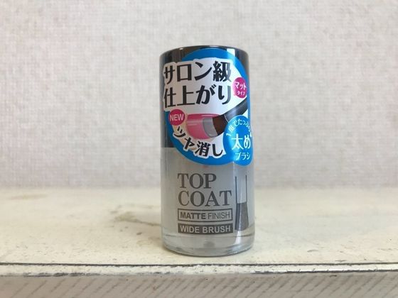 流行りのマットを塗るときは、爪に凹凸があるとキレイに塗れないので、ベースコートを塗ったり、爪をキチンと整えて平らにしておくことが大事。もし手軽にマットにトライしてみるなら、いまお持ちのツヤのあるネイルを塗った上から、2本くらいマットコートを塗ってみると、簡単だしトレンド感も出ますよ。セリアから出ているマットコートは、ワイドブラシで塗りやすいのでオススメです。