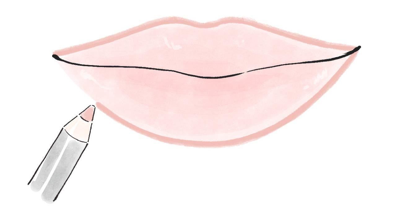 3、ベージュのリップペンシルでラインをとる