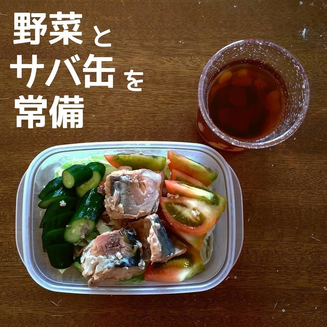 時間や食べるものがなく適当に食事を済ませると、あとから空腹に耐えられず暴食につながりやすくなってしまいますよね。zakki_dietさんは、そんなときのために野菜とサバ缶を常備しているそうです。野菜にサバ缶をかけるだけで、水分と栄養を補給できる時短・簡単な一品がつくれますよ。