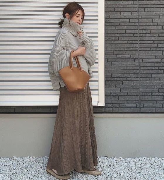 もしトップスでグレー系を選ぶなら、ニュアンスカラーの「グレージュ」がおすすめです。ニュアンスのあるカラーで、顔まわりも暗くなりすぎず、適度な明るさと上品さを持ち合わせたコーディネートになりますよ。ドライなイメージのあるグレーも「グレージュ」にチェンジすれば、キメすぎない、すこしやわらかさのある大人の配色に!