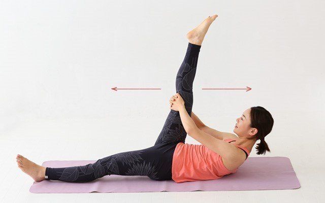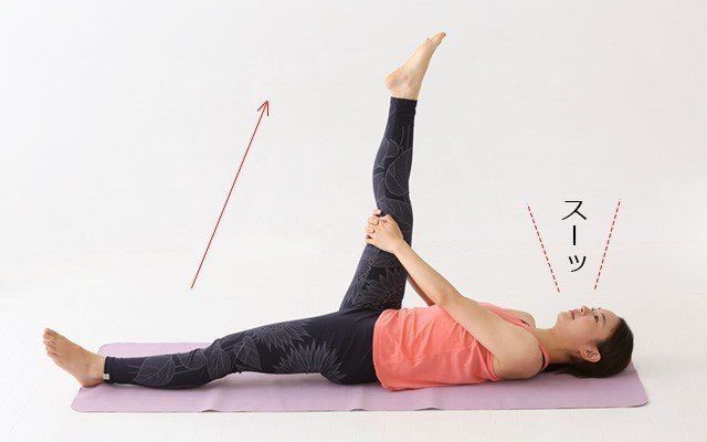 2、片足をあげ上半身に近づける