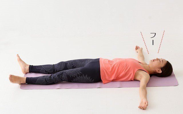 一気に力を抜いて、息も同時に吐きます。脱力状態で10秒間静止して終了。