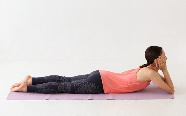 うつぶせに寝て、両手でほおづえをつきます。