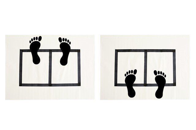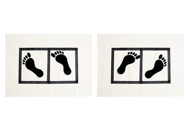 2. 長方形の中心線をはさんで立ち、目を閉じてその場で50回足踏みします。
