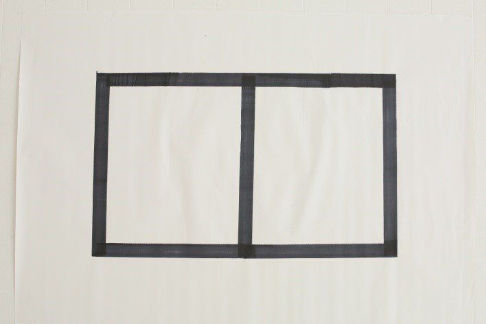 ※目印の作り方:下の写真のように、マジック、テープなどで横50cm縦30cmの長方形を描き、真ん中に縦線を描きます。