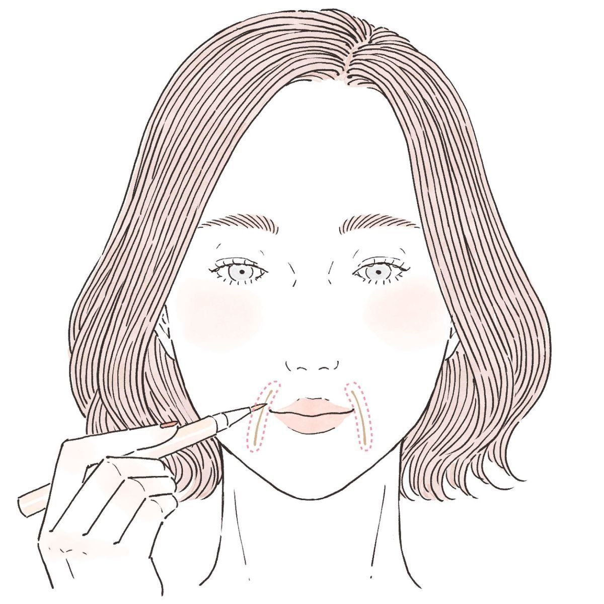 また使用するコンシーラーは、テクスチャーの軽いものを選びましょう。口周りは顔のなかでもよく動く箇所なので、カバー力が強いものを厚塗りしてしまうと、時間がたつとよれてシワが深くなってしまい、かえってほうれい線が目立つようになってしまうので注意!