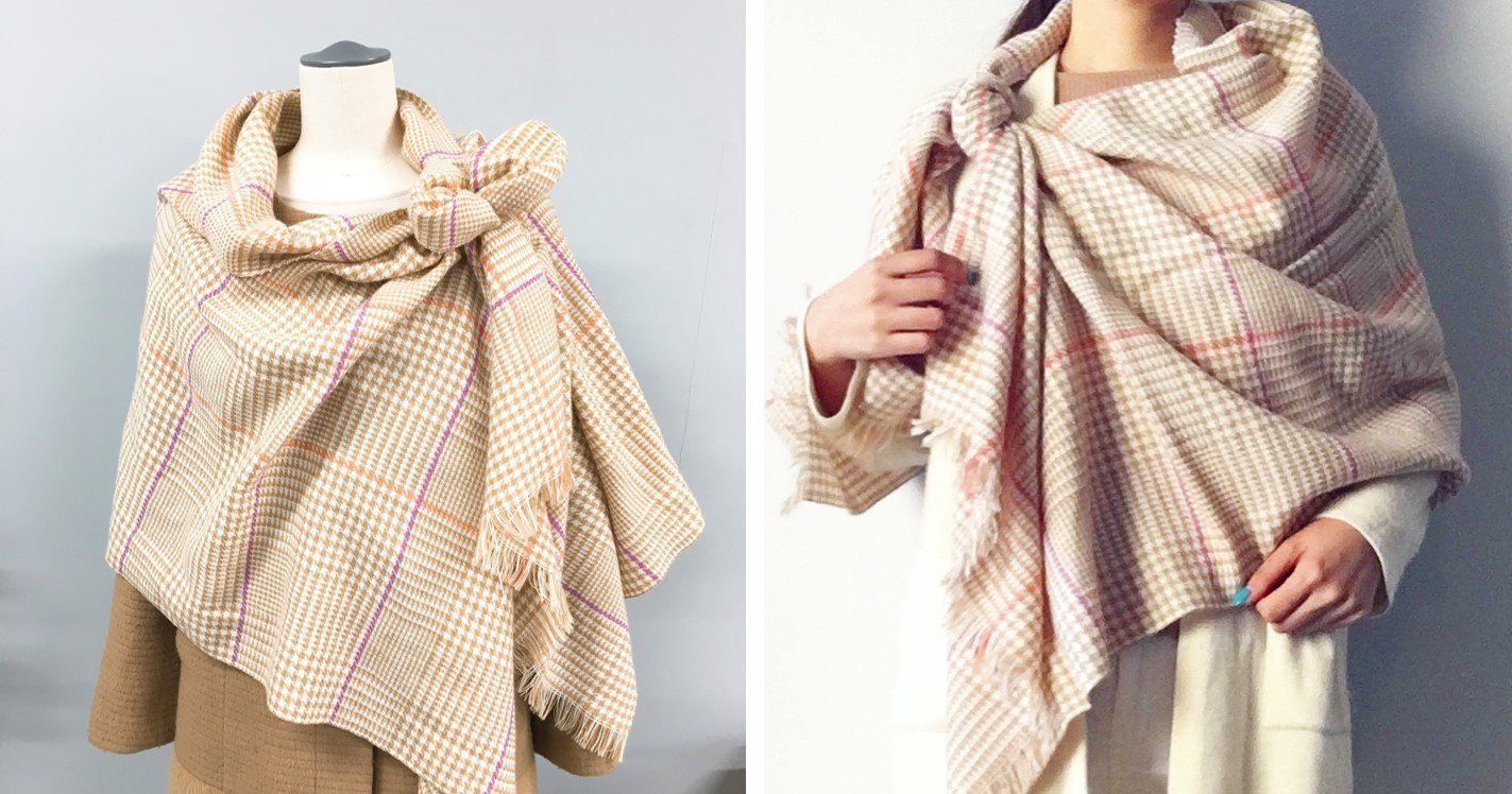 お気に入りのストール柄があって、その柄を生かしたいなら「ケープ風アレンジ」がおすすめです。