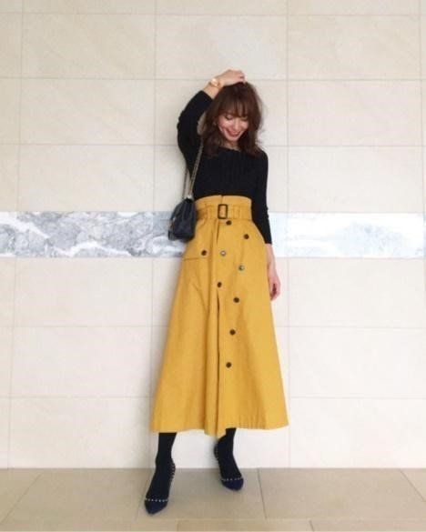 またトレンチコートのデザインを施したトレンチスカートやマリンパンツでも同じようにすっきり見せ効果があります。