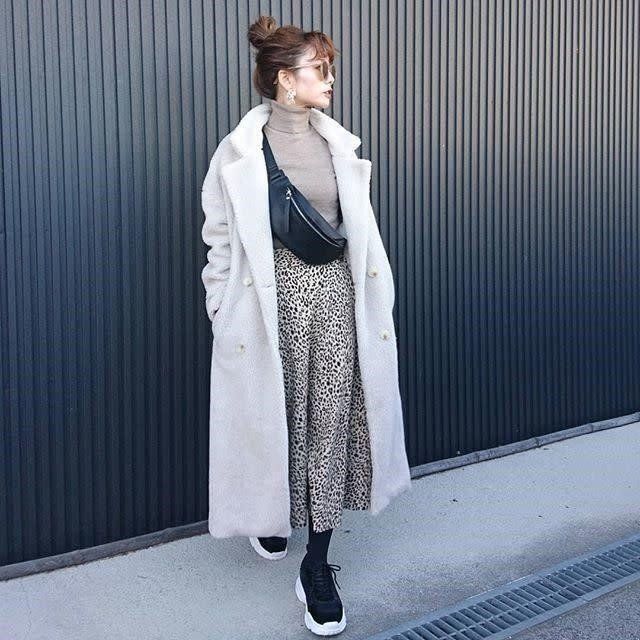 こちらはトレンドのウエストバッグ。短めのすストラップにして、ボディに沿うようにクロススタイルにすれば、体に入る斜めのラインが軽やかな印象+こなれ感も!