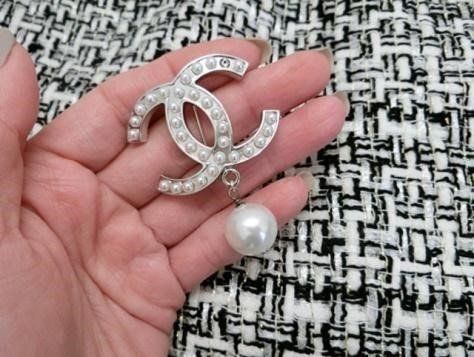 ネックレスももちろん無難ですが、意外と便利なのが、パール系のブローチ。クラシカルな印象プラス華やぎも演出できますよ。