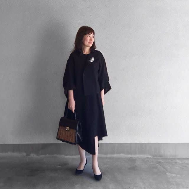 もちろん黒は完全フォーマルなので、NGではありません。ただ上下黒になると、重たい雰囲気もでるので、素材や小物合わせで、お祝いの席らしい要素をプラスするのが大切です。