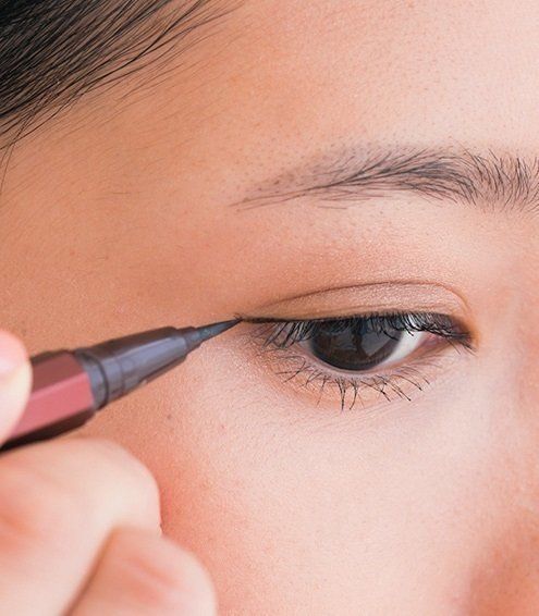 長井流のもう1つの余白コントロール術が、ちょいたしライン。アイラインを長くすることで目を大きく見せ、目尻~こめかみの幅の縮小=小顔効果を狙います。