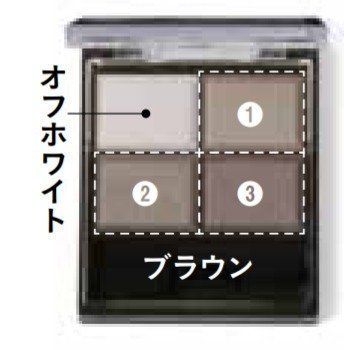 ブラウンのアイシャドウは、下図の①⇒②⇒③のように薄い色⇒濃い色の順に塗っていきます。すべての色を塗らなくても、彫りがつくれた時点で終了してOK!