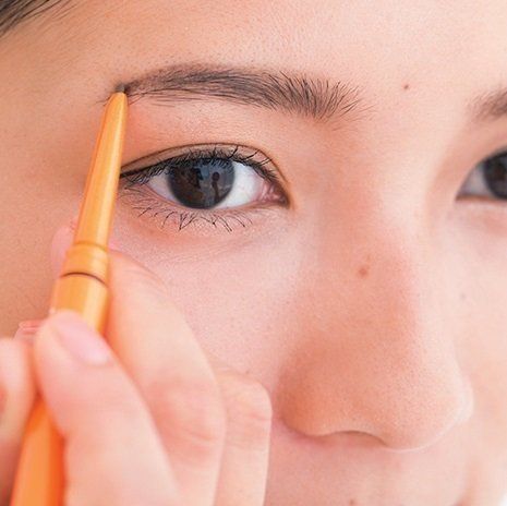 手持ちのアイブロウパウダーでいつもどおりに眉を描いたあと、眉尻の上側に眉ペンシルで〝眉毛1本分〞を描きたして。