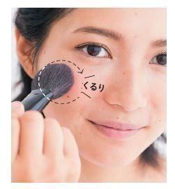 2でのせたチークの外側をぼかすイメージで、円を描くようにくるりとブラシを回し、肌との境目をなじませると、オーラのような余韻が誕生。