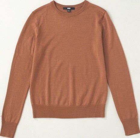 ▲ユニクロの薄手のニットは2990円とコスパ高。ウエストインもしやすく、細見え効果も。秋らしいベージュが使える。