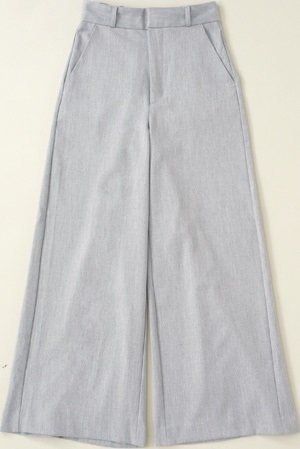 ▲ほんのりとした光沢、淡いグレーが女性らしさを演出するGUのワイドパンツ。1990円とは思えない上品さ。