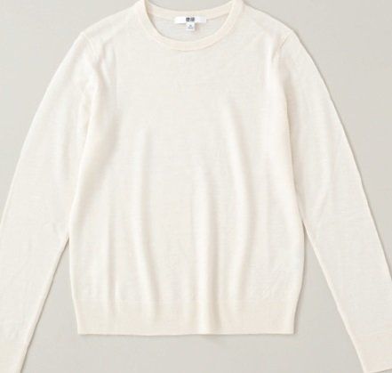 暗いカラーが増えがちなこれからの季節には、白いシンプルなニットが大活躍。写真はユニクロのもの(私物)です。