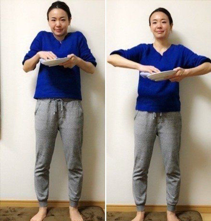 その代わり、日常生活の中にちょっとした動きにトレーニングを取り入れています。今回はお茶碗拭きをしている際にできる、簡単ながらエクササイズをご紹介しますね。