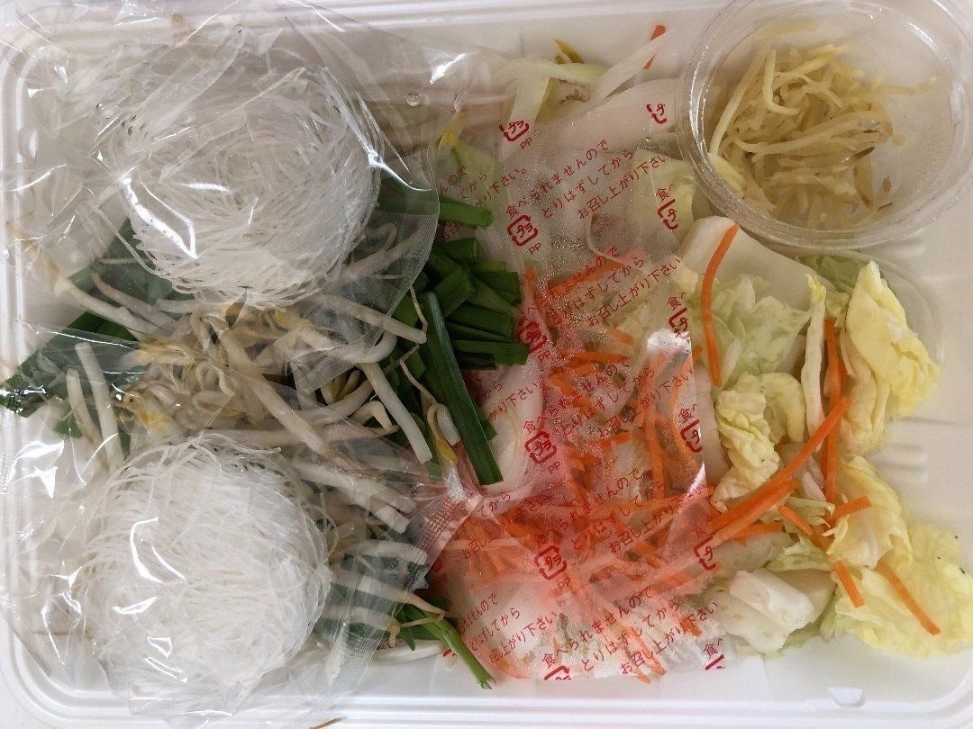 メニューを考える手間も省けて(笑)、いろいろな種類の野菜がとれて、お腹もすっきりです!!こちらは野菜たっぷり春雨スープセット。