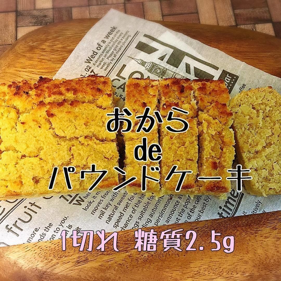 間食用に、おからやプロテインを使用した低糖質スイーツの手づくりもしています。こちらは、生おからやふすまパンミックス、アーモンドプードルを使用したおからパウンドケーキ。ダイエット中でもおいしく食べられるおやつで、満足度もアップしそうですね!