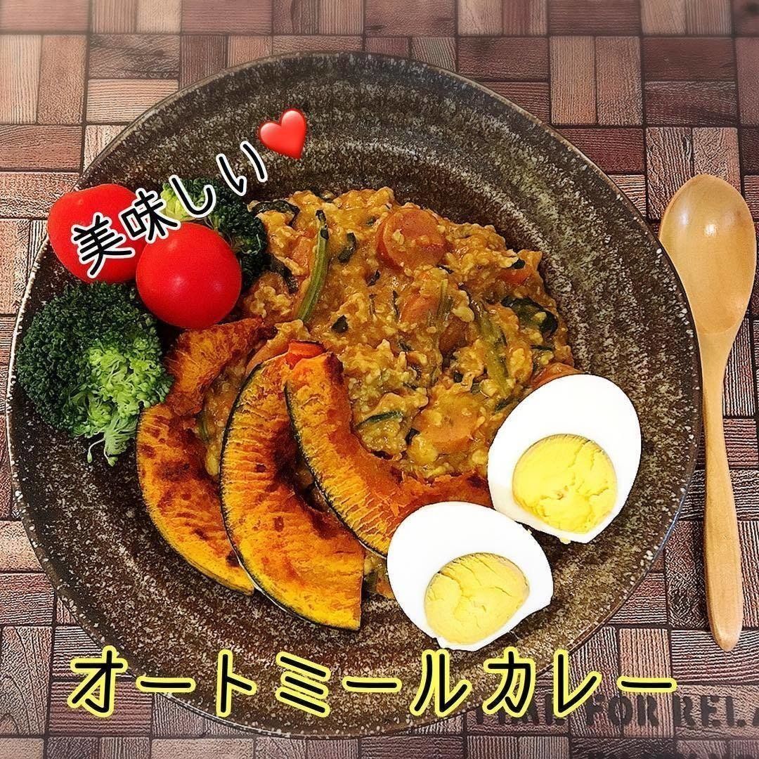 この日は、オートミールカレーづくりに挑戦!調味料は、カレー粉、塩コショウ、ガーリックパウダー、ウスターソース、ケチャップ。野菜をたっぷり使用して、卵もトッピングしました。使用したカレー粉は「カルディ」のもので、ほかのカレールウではなかなか味わえない、スパイシーさがクセになりそうとのことです。