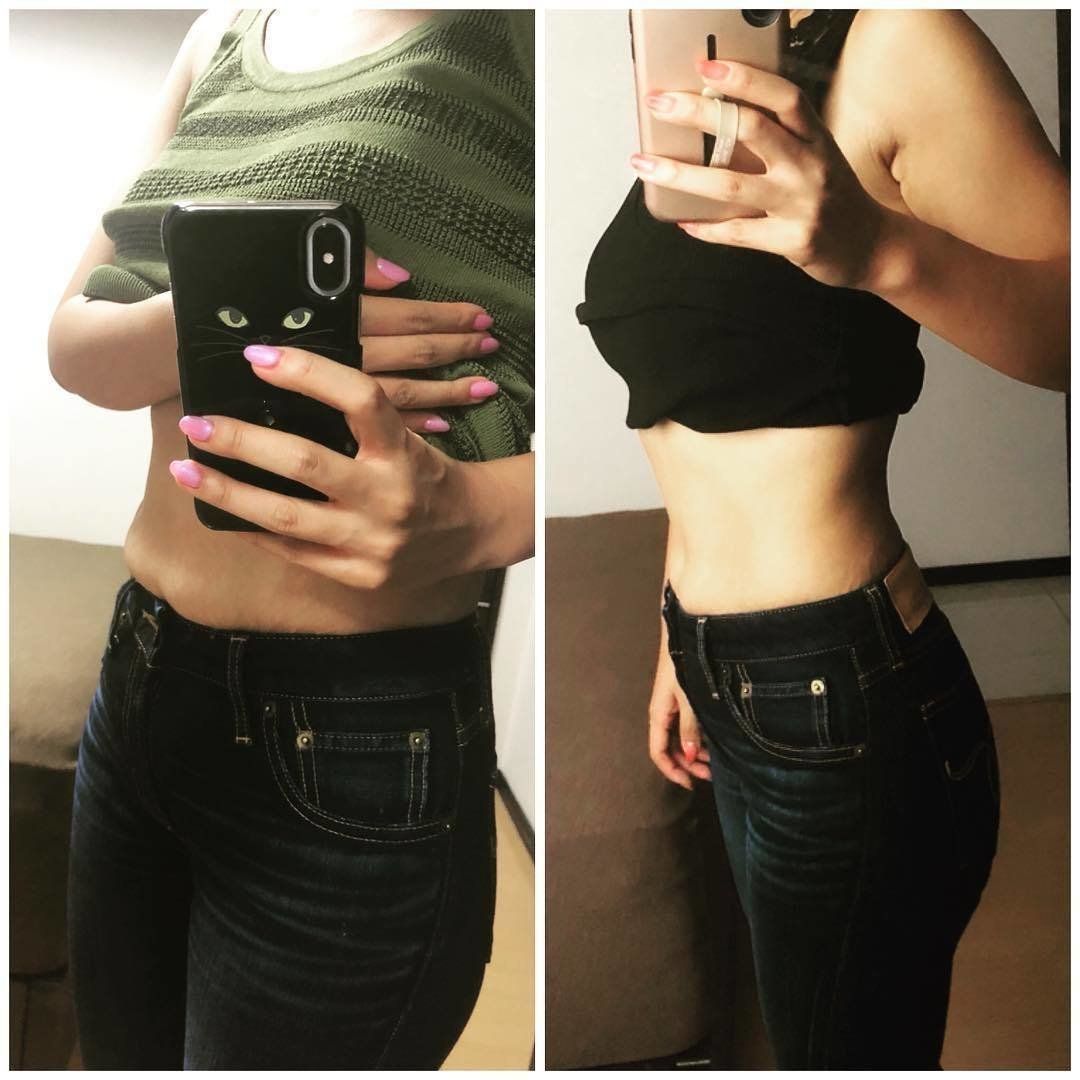 パーソナルジムへは、1日おき・週3~4回のペースで欠かさずに通い続けています。1回1時間のトレーニングでは、筋トレ・有酸素運動・体幹トレーニングなど、さまざまな運動をバランスよく実践。しっかりと筋肉を育てながら確実にやせていったことで、皮を引き締めながらきれいなボディラインをつくることができました。