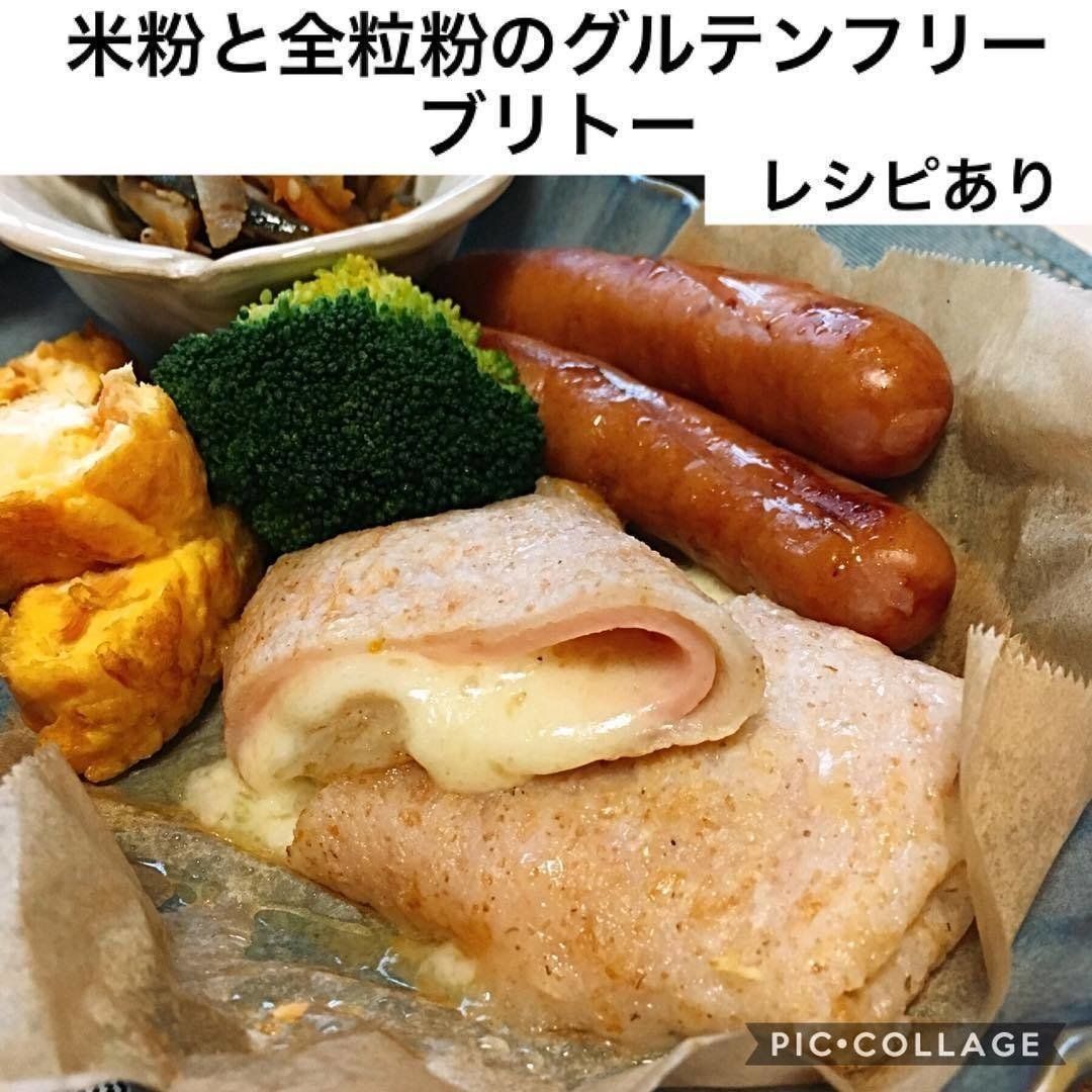 朝食のメニューは毎日変化させ、いろいろな食事を楽しんでいます。こちらは「米粉と全粒粉のブリトー」。米粉と全粒粉、水を混ぜて生地をつくったら、オリーブオイルで両面を焼き、ハムやチーズなどの具材を入れて巻くだけで完成です。粉っぽさはなく、もちもちの仕上がりでおいしいのだとか♪