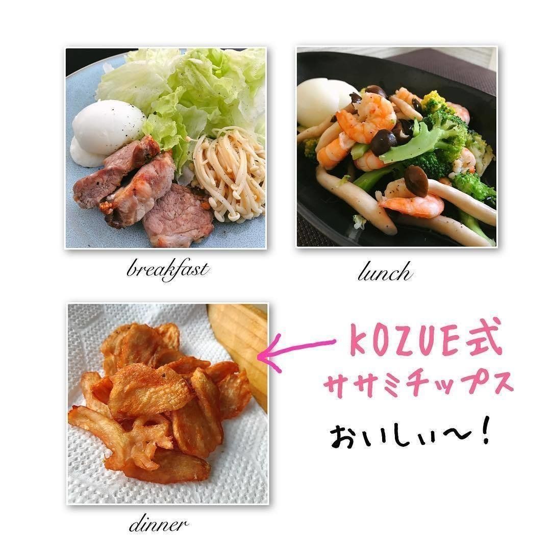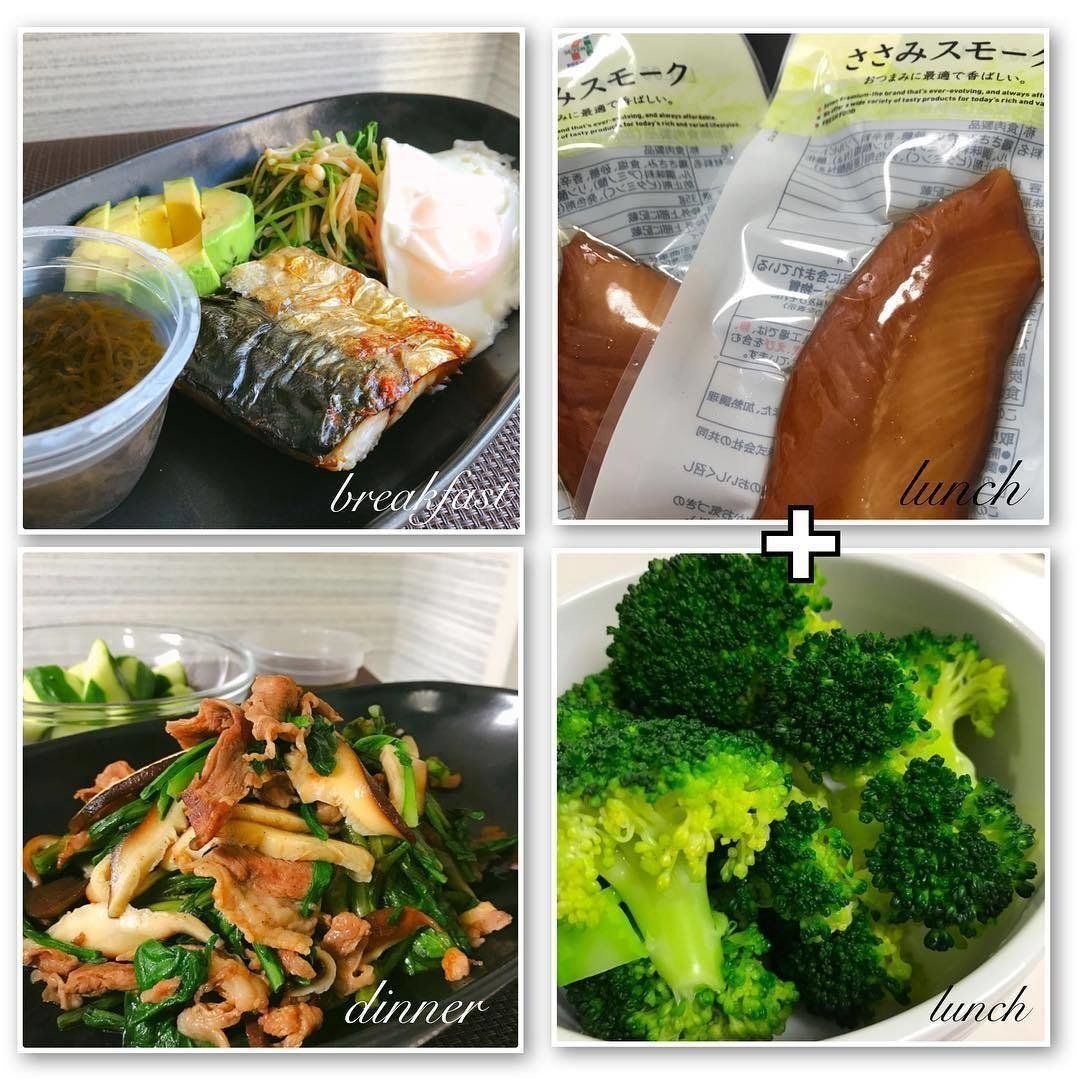 主な食事内容は、タンパク質中心の糖質制限メニュー。この日も朝ごはんにサバと目玉焼き、昼ごはんにはコンビニのささみスモーク、夜にはラム肉と、3食しっかりタンパク質をとっています。合わせてアボカドやブロッコリー、ほうれん草やきゅうりなど、野菜もバランスよく食べているようです。