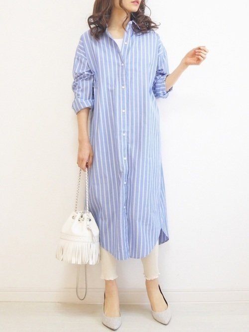 ブルーを基調とした太いストライプのシャツワンピースは、ベーシックでありながらも一気に夏を運んできてくれるパワーアイテム。ぱりっとした素材がプチプラを感じさせないポイント。スタイルもすっきり見せてくれます。