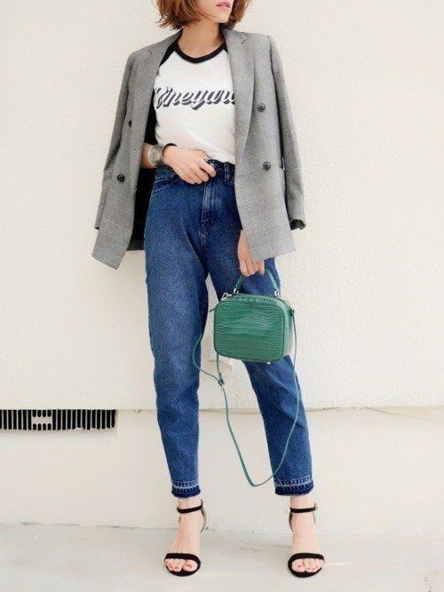 Tシャツとデニムの毎日コーデも、GUのブレザーを羽織るだけで一気にクラスアップ。グレンチェック柄もダブルブレストなら気負いすぎず、カジュアルコーデにマッチ。ライトカラーを選ぶことで春夏でも着回しやすく。