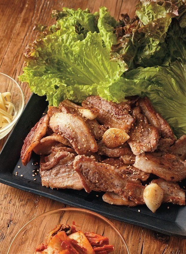 (3)サニーレタスに(2)を重ね、好みでキムチやチーズをのせて包んで食べる。