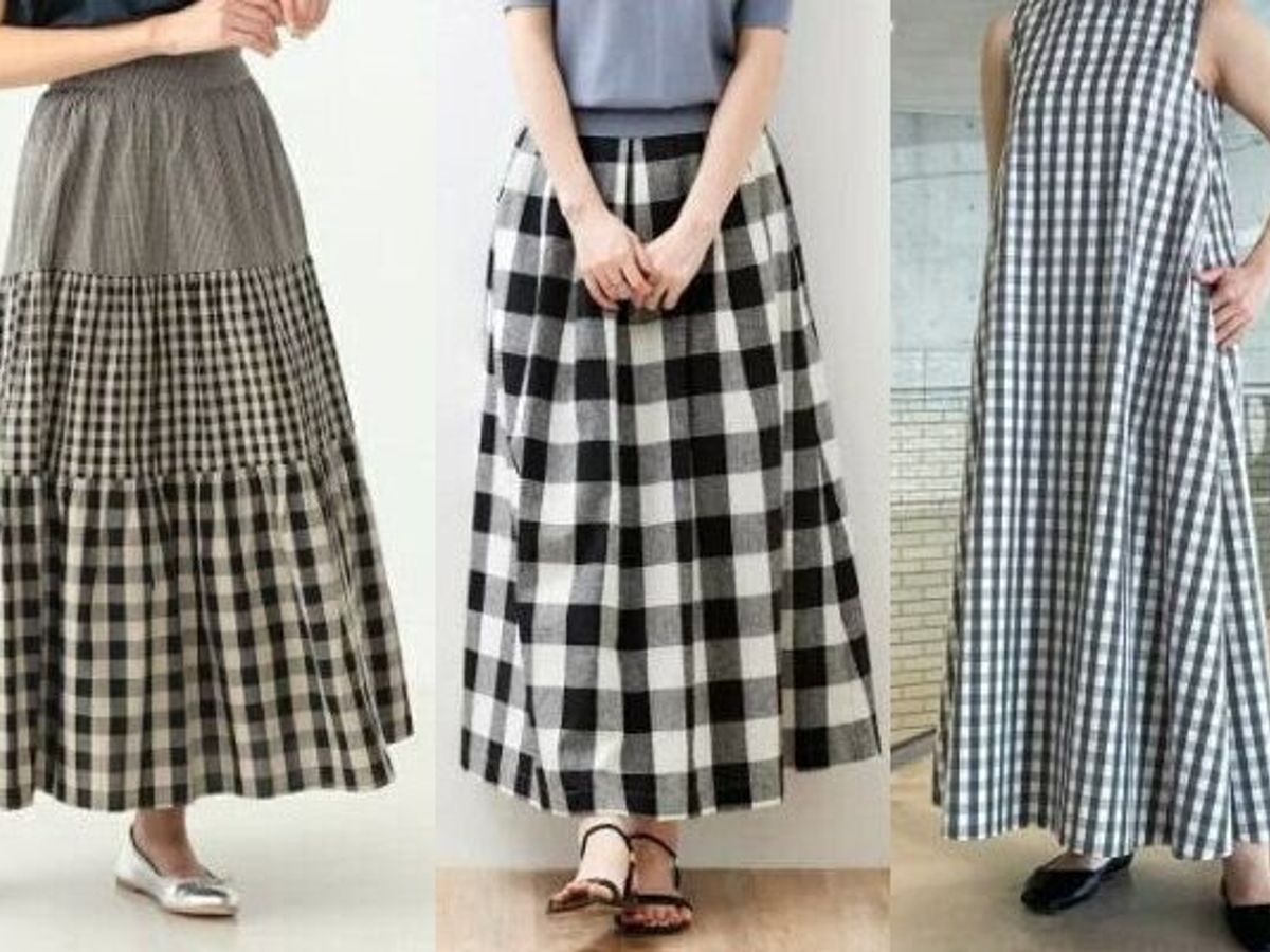 3種類のギンガムチェックを組み合わせたふんわりとしたシルエットのティアードスカート。トップスはシンプルに、そしてインすればすっきり見せることができますよ。