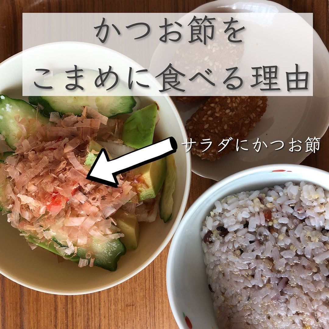 日々の食事では、かつお節をこまめに取り入れています。かつお節には、新陳代謝アップや脂肪燃焼サポートなどの効果が期待できるとのこと。サラダなどのトッピングとして、手軽に取り入れやすいのもうれしいですね。