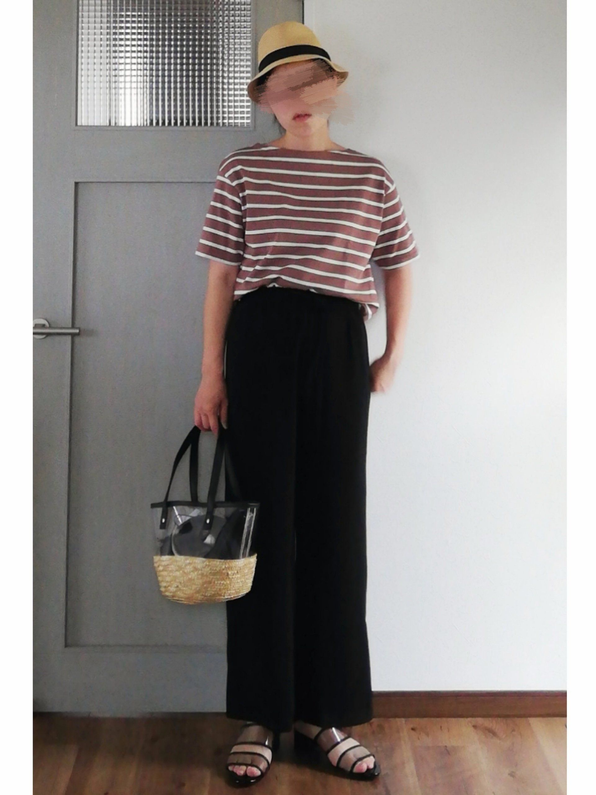 ボーダーボートネックT×ワイドパンツで大人カジュアルなコーデに。