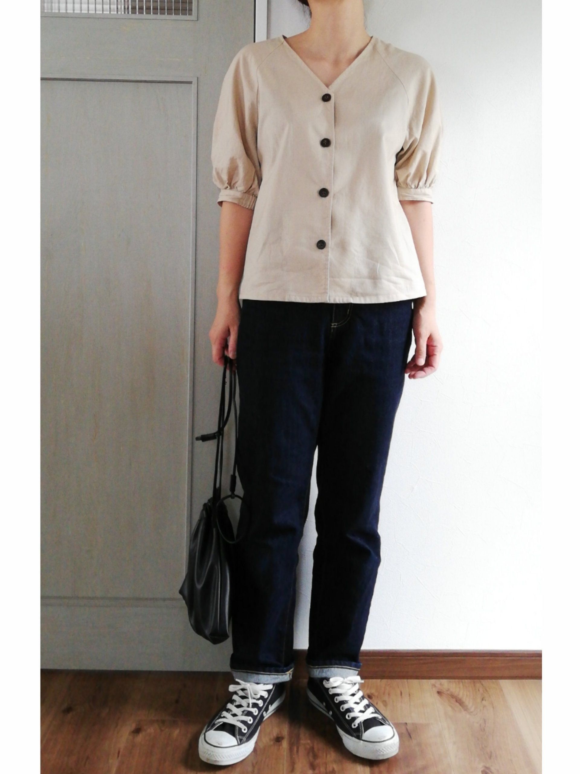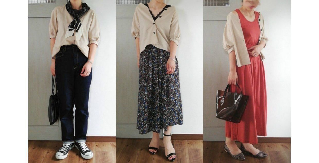 リネンブレンドフロントボタンブラウスを使った夏の着まわしコーデを、ファッションライター木村麻衣子さんに教えていただきました。