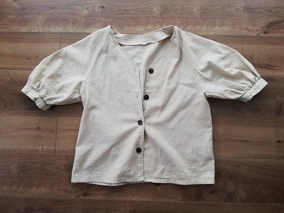 ボタンをとめて、すとんと着るとこんな感じに。悪くはないのですが、なんだかのっぺりしてあか抜けない印象に…。