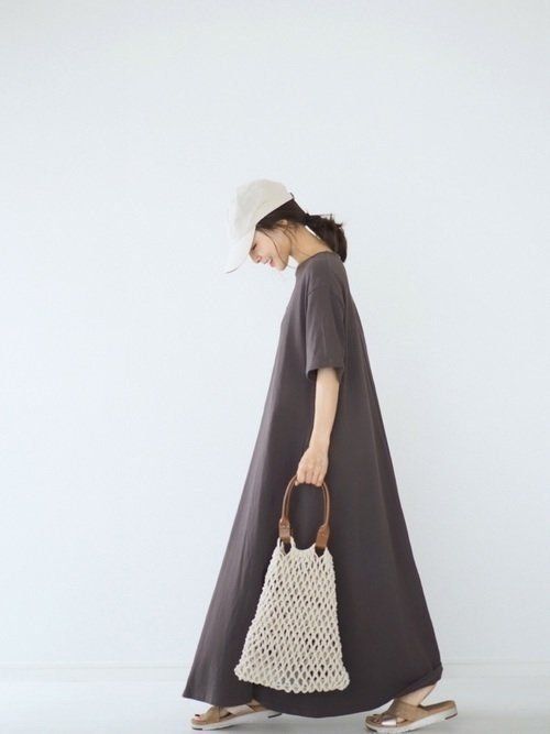 さらっと1枚で着られるワンピースはカジュアルなコーデにぴったり。シンプルでありながら手抜きに見えないスタイルは、いそがしい日々を送る人にもおすすめです。ワンピースは3,690円。