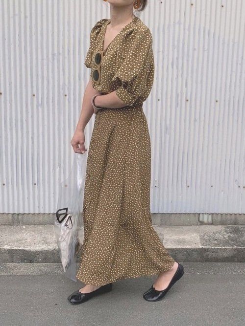 花柄×ドットのかわいらしい柄でありながら、こまかい柄なのでかわいくなりすぎないスカート。シンプルなトップスと合わせれば、大人っぽく着こなせます。スカートは6,990円。